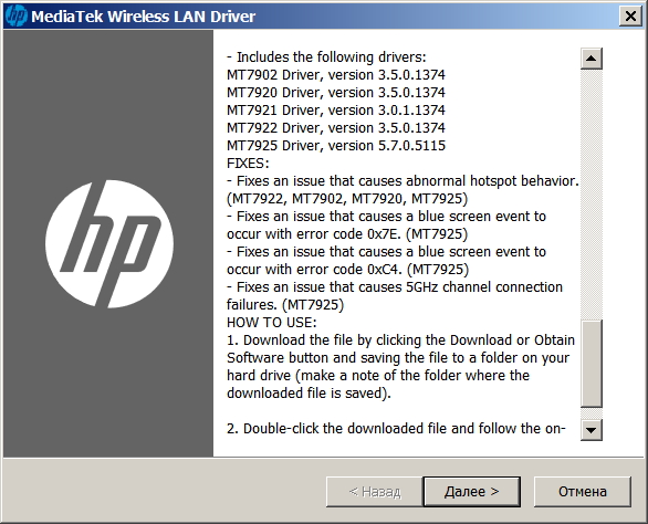 Главная » 2026»Март»1 » MediaTek MT7922 Wi-Fi 6E Wireless Lan Adapter drivers 3.05.00.1374 (Драйверы для сетевых адаптеров Wi-Fi)